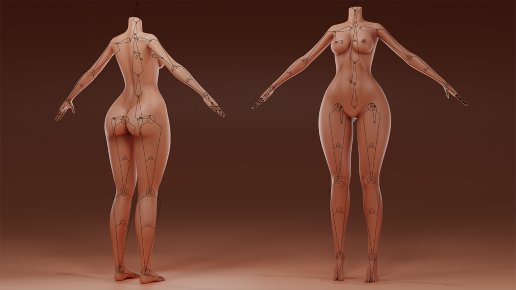 - Twist bones for legs/arms and Wiggle bones for breast and butt.